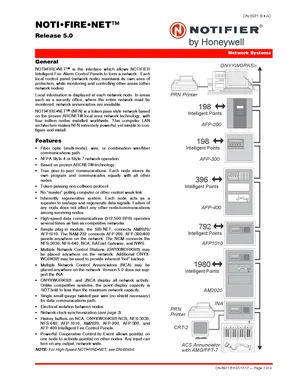 Datasheet for the Notifier NOTI-FIRE-NET, published in 2017. Document No: DN-6971, Rev: B. 31 models including NOTI-FIRE-NET, AFP-200, AFP-300 and 28 additional variants. Engineering specifications, wiring diagrams, and mounting dimensions.