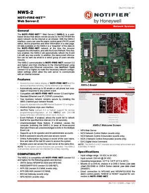 Datasheet for the Notifier NWS-2, published in 2006. Document No: DN-7113, Rev: A0-141. 17 models including NWS-2, NFS-640, NFS2-3030 and 14 additional variants. Product features, environmental operating limits, and compatibility data.
