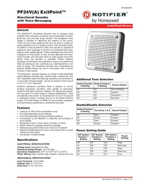 Datasheet for the Notifier PF24V, published in 2010. Document No: DN-60245, Rev: B. Models PF24V, PF24VA and BBS-SP201W. Engineering specifications, wiring diagrams, and mounting dimensions.
