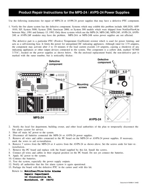 Manual for the Notifier Product Repair Instructions for MPS-24 and AVPS-24, published in 1992. Document No: 15098, Rev: A. 15 models including MPS-24, AVPS-24, MPS-24E and 12 additional variants. Component descriptions, indicators and controls, and user interactions.