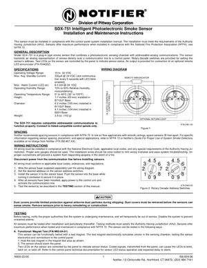 Installation Manual for the Notifier SDX-751, published in 1997. Document No: I56-654-06, Rev: 06. 6 models including SDX-751, RA400Z, B710LP and 3 additional variants. Physical installation guide, backbox dimensions, and cabling specifications.
