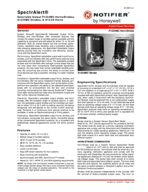 Datasheet for the Notifier SpectrAlert Selectable Output, published in 2007. Document No: dn-6941, Rev: a1. Models P1224MC, S1224MC and H12/24. Engineering specifications, wiring diagrams, and mounting dimensions.