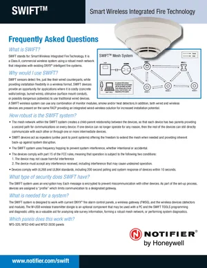 Brochure for the Notifier SWIFT. Model SWIFT. Product lineup, feature summary, and deployment scenarios.