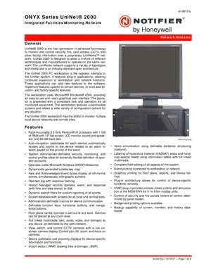 Datasheet for the Notifier UniNet 2000, published in 2008. Document No: dn-6913, Rev: a. 16 models including UniNet 2000, U2WKS-2.0-ONYX, U2WKS-2.0L-ONYX and 13 additional variants. Detailed technical specifications, electrical ratings, and agency listings.