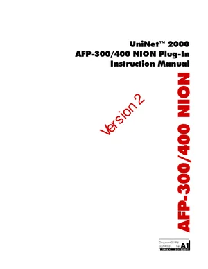 Installation and Operations Manual for the Notifier UniNet 2000 AFP-300/400 NION Plug-In Version 2, published in 2003. Document No: 51996, Rev: A1. 5 models including AFP-300, AFP-400, AFP-300/400 NION and 2 additional variants. System installation procedures and daily operating instructions.