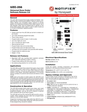 Datasheet for the Notifier UZC-256, published in 2009. Document No: dn-3404, Rev: b. 15 models including UZC-256, UZC-SI, UZC-HI and 12 additional variants. Engineering specifications, wiring diagrams, and mounting dimensions.