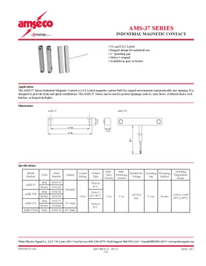 Datasheet for the Potter AMS-37 Series Industrial Contacts, published in 2010. Document No: 8910231, Rev: C. 4 models including AMS-37, AMS-37B, AMS-37L and 1 additional variants. Detailed technical specifications, electrical ratings, and agency listings.