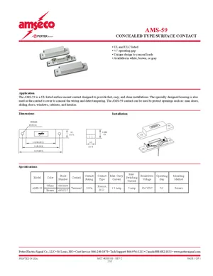 Datasheet for the Potter AMS-59, published in 2010. Document No: 8880100, Rev: C. Model AMS-59. Product features, environmental operating limits, and compatibility data.