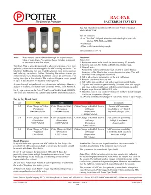Datasheet for the Potter BAC-PAK, published in 2008. Document No: 5400602, Rev: B. Model BAC-PAK. Product features, environmental operating limits, and compatibility data.