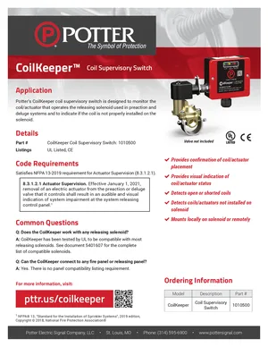 Application Guide for the Potter CoilKeeper. Model CoilKeeper. Hardware installation, alarm/fault management, and advanced system configuration.