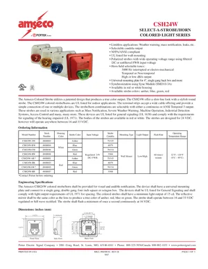 Datasheet for the Potter CSH24W, published in 2007. Document No: 8850036, Rev: B. 10 models including CSH24W, CSH24W-AW, CSH24W-BW and 7 additional variants. Product features, environmental operating limits, and compatibility data.