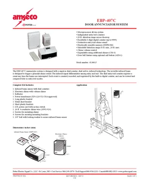 Datasheet for the Potter EBP-407C, published in 2010. Document No: 8850054, Rev: C. 5 models including EBP-407C, EBPT-407, CM-4 and 2 additional variants. Detailed technical specifications, electrical ratings, and agency listings.
