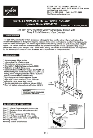 User Guide for the Potter EBP-407C, published in 2010. Models EBP-407C, CM-4 and AES-1. End-user operating instructions, system navigation, and daily operation procedures.