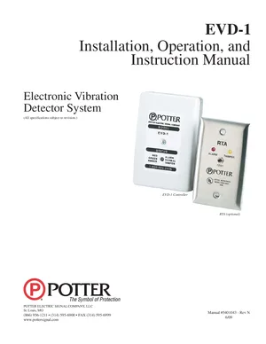 Installation and Operations Manual for the Potter EVD-1, published in 2009. Document No: 5401043, Rev: N. 5 models including EVD-1, EVD-1C, HSC-1 and 2 additional variants. Hardware mounting, wiring, and user system management.