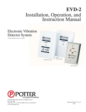 Installation and Operations Manual for the Potter EVD-2, published in 2009. Document No: 5401042, Rev: N. 6 models including EVD-2, EVD-M, EVD-R and 3 additional variants. Hardware mounting, wiring, and user system management.
