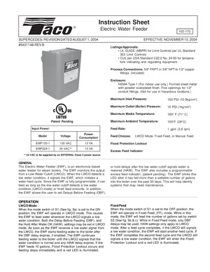 Installation Manual for the Potter EWF120-1 and EWF024-1, published in 2004. Document No: 102-170, Rev: B. Models EWF120-1 and EWF024-1. Hardware installation, terminal connections, and environmental requirements.