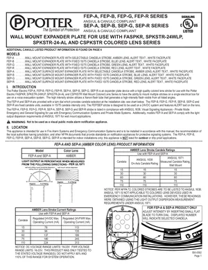 Installation Manual for the Potter FEP and SEP Series, published in 2013. Document No: 550-0592, Rev: AAB. 8 models including FEP-A, FEP-B, FEP-G and 5 additional variants. Hardware installation, terminal connections, and environmental requirements.