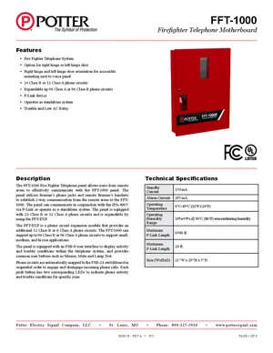 Installation Manual for the Potter FFT-1000, published in 2021. Document No: 8830176, Rev: A. 9 models including FFT-1000, FFT-1000R, FFT-1000L and 6 additional variants. Hardware installation, terminal connections, and environmental requirements.