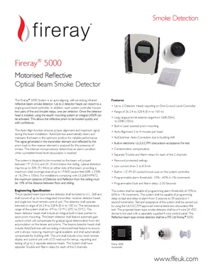 Datasheet for the Potter Fireray 5000. Document No: 24-0318-04. 16 models including 5000-103, 5000-031, 5000-005 and 13 additional variants. Product features, environmental operating limits, and compatibility data.