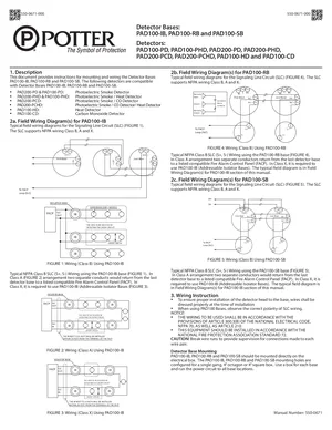 Installation Manual for the Potter PAD100-IB, PAD100-RB, PAD100-SB, published in 2016. Document No: 550-0671, Rev: AAE. 15 models including PAD100-IB, PAD100-RB, PAD100-SB and 12 additional variants. Hardware installation, terminal connections, and environmental requirements.