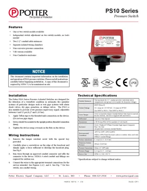 Installation and Operations Manual for the Potter PS10 Series, published in 2020. Document No: 5400928, Rev: E. Models PS10, PS10-1 and PS10-2. Hardware mounting, wiring, and user system management.