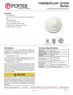 Datasheet for the Potter THERMOFLEX CF/CR Series, published in 2022. Document No: 8840004, Rev: S. 13 models including CR-135W, CR-165W, CR-200W and 10 additional variants. Engineering specifications, wiring diagrams, and mounting dimensions.