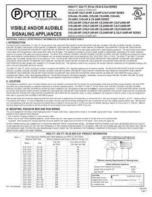 Installation Manual for the Potter Visible and Audible Signaling, published in 2013. Document No: 550-0593. 33 models including HS24-177, S24-177, EH-24 and 30 additional variants. Hardware installation, terminal connections, and environmental requirements.