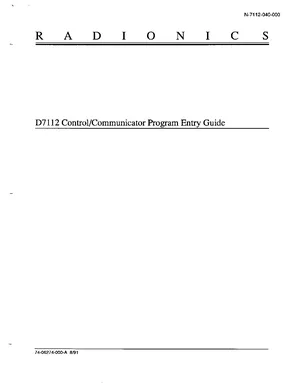 Programming Manual for the Radionics D7112, published in 1991. Document No: 74-06274-000, Rev: A. 13 models including D7112, D1254, D710 and 10 additional variants. Software programming guide, option settings, and network configuration.