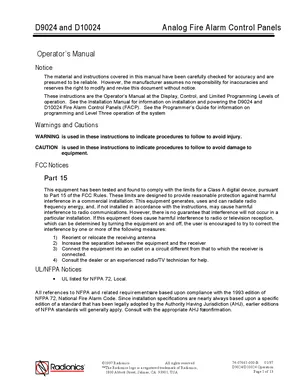 Operations Manual for the Radionics D9024 and D10024, published in 1997. Document No: 74-07661-000-B, Rev: B. Models D9024 and D10024. Daily operating procedures, alarm response guides, and system status indicators.