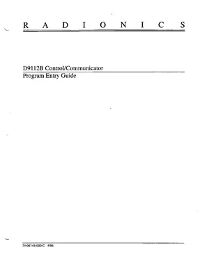 Programming Manual for the Radionics D9112B, published in 1995. Document No: 74-06145-000, Rev: C. Models D9112B and D9112. Database setup, feature customization, and password management.