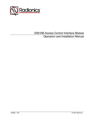 Installation and Operations Manual for the Radionics D9210B, published in 1997. Document No: 32206C, Rev: C. Models D9210B, D9210BLC and D9210BC. System installation procedures and daily operating instructions.