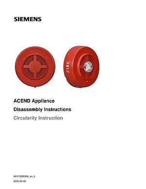 Manual for the Siemens ACEND Appliance Disassembly Instructions, published in 2025. Document No: A6V12808994, Rev: b. 24 models including SC-HS-WR-F, SC-HS-WW-F, SC-HS-CR-F and 21 additional variants. Component descriptions, indicators and controls, and user interactions.