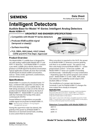 Datasheet for the Siemens ADBH-11, published in 2012. Document No: 6305, Rev: 2. 4 models including ADBH-11, HFP-11, HFPO-11 and 1 additional variants. Engineering specifications, wiring diagrams, and mounting dimensions.