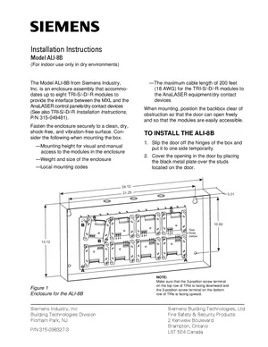 Installation Manual for the Siemens ALI-8B. Document No: 315-098327-3, Rev: 3. 4 models including ALI-8B, TRI-S, TRI-D and 1 additional variants. Mounting instructions, wiring diagrams, and system power-up procedures.