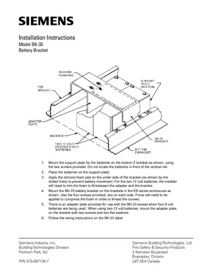 Installation Manual for the Siemens BK-33. Document No: 315-087134-7. Model BK-33. Hardware installation, terminal connections, and environmental requirements.