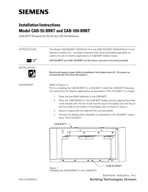Installation Manual for the Siemens CAB-55-BRKT and CAB-100-BRKT. Document No: 315-050547-0. Models CAB-55-BRKT and CAB-100-BRKT. Mounting instructions, wiring diagrams, and system power-up procedures.