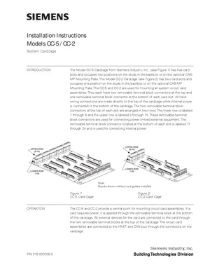 Installation Manual for the Siemens CC-5 and CC-2. Document No: 315-033035-6, Rev: 6. Models CC-5 and CC-2. Physical installation guide, backbox dimensions, and cabling specifications.