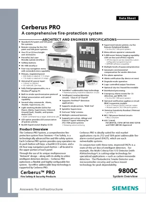 Datasheet for the Siemens Cerberus PRO System Overview, published in 2013. Rev: 4. 67 models including FC922, FC924, FT924 and 64 additional variants. Product features, environmental operating limits, and compatibility data.