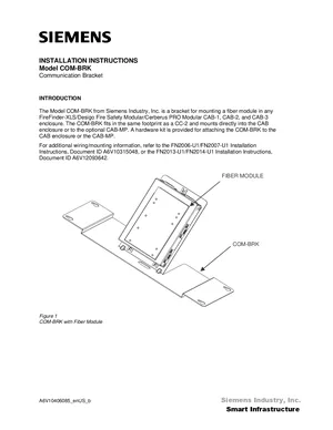 Installation Manual for the Siemens COM-BRK. Document No: A6V10406085, Rev: b. 10 models including COM-BRK, CC-2, CAB-1 and 7 additional variants. Hardware installation, terminal connections, and environmental requirements.