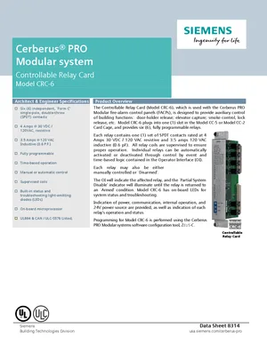 Datasheet for the Siemens CRC-6, published in 2017. Document No: 8314, Rev: 0. Models CRC-6, CC-5 and CC-2. Detailed technical specifications, electrical ratings, and agency listings.