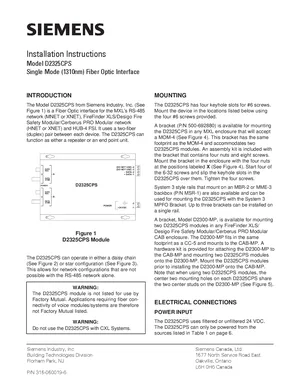 Installation Manual for the Siemens D2325CPS. Document No: 315-050019-6. 51 models including D2325CPS, D2300-MP, MOM-4 and 48 additional variants. Mounting instructions, wiring diagrams, and system power-up procedures.