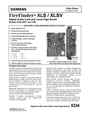 Datasheet for the Siemens DAC-NET and LPB, published in 2016. Document No: 6334, Rev: 3. 13 models including DAC-NET, LPB, SCM-8 and 10 additional variants. Product features, environmental operating limits, and compatibility data.