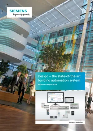 Brochure for the Siemens Desigo Building Automation System, published in 2019. 25 models including QAX30, QAX31, QAX32 and 22 additional variants. System capabilities, competitive advantages, and integration options.