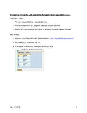 User Guide for the Siemens Desigo CC LMS Cockpit, published in 2016. Model Desigo CC. End-user operating instructions, system navigation, and daily operation procedures.