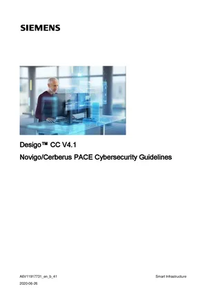 Manual for the Siemens Desigo CC V4.1 Cybersecurity Guidelines, published in 2020. Document No: A6V11917731, Rev: b. Model Desigo CC. System overview, features and capabilities, and basic operation.