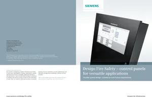 Brochure for the Siemens Desigo Fire Safety, published in 2012. 5 models including FC2025, FC2050, FT2014 and 2 additional variants. Product highlights, key features, and application overview.