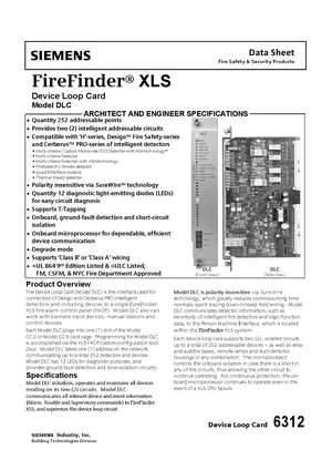 Datasheet for the Siemens DLC, published in 2013. Document No: 6312, Rev: 3. Model DLC. Product features, environmental operating limits, and compatibility data.