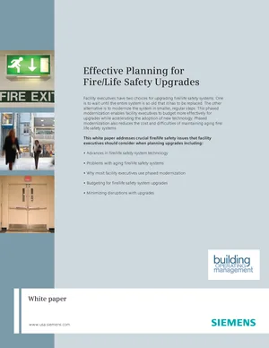 Brochure for the Siemens Effective Planning for Fire/Life Safety Upgrades, published in 2011. Document No: 153-FIS-118. Product highlights, key features, and application overview.