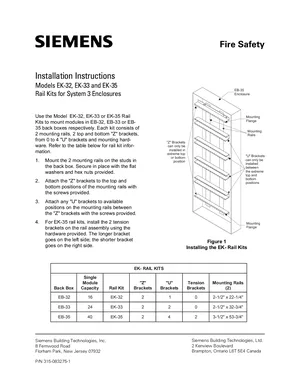 Installation Manual for the Siemens EK-32, EK-33 and EK-35. Document No: 315-083275-1. Models EK-32, EK-33 and EK-35. Physical installation guide, backbox dimensions, and cabling specifications.