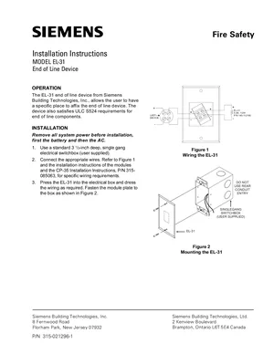 Installation Manual for the Siemens EL-31. Document No: 315-021296-1. Model EL-31. Mounting instructions, wiring diagrams, and system power-up procedures.